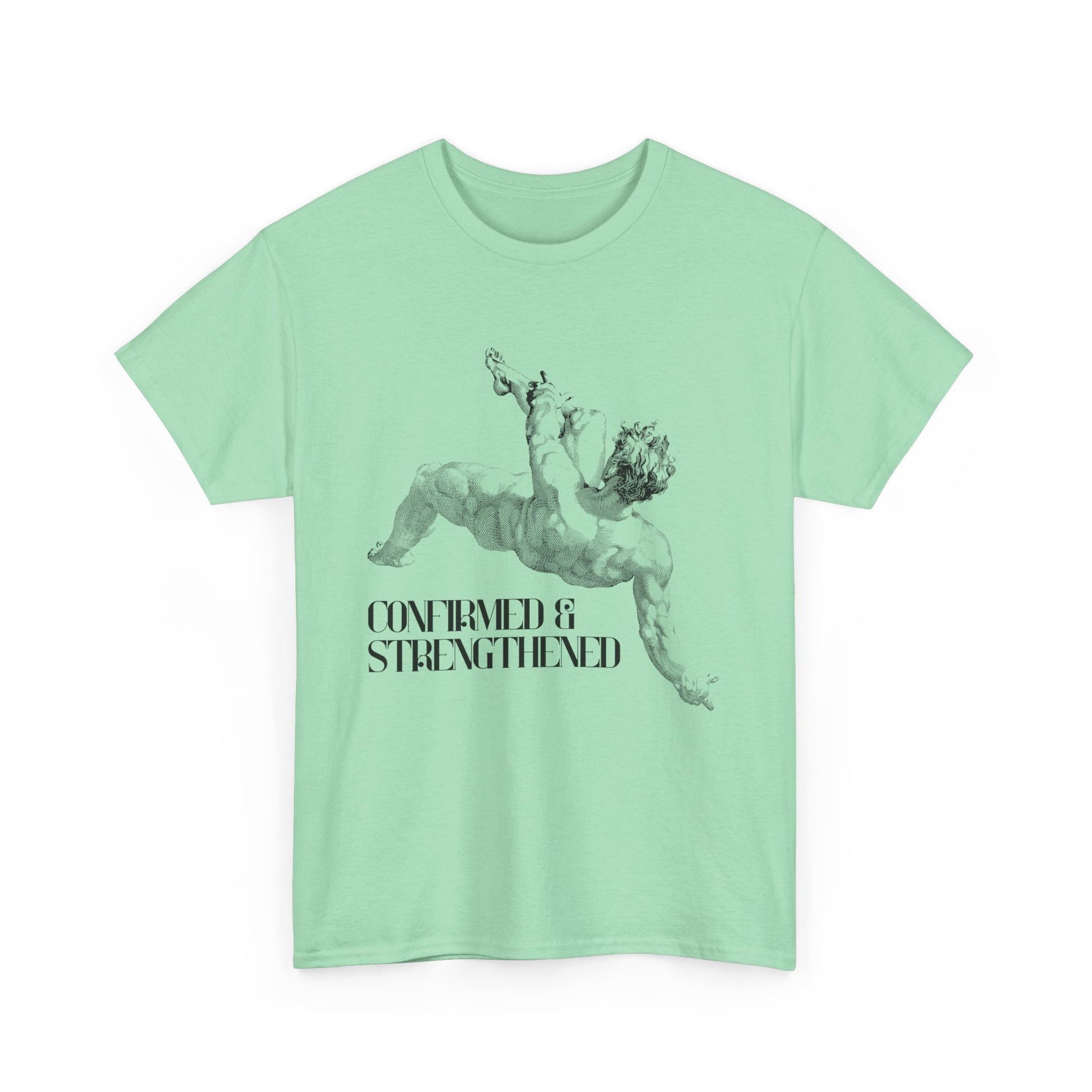 Celebrate resilience and divine empowerment with our "Confirmed & Strengthened" tee. Featuring the image of a strong man, this shirt is a powerful statement for anyone who feels fortified by their faith and experiences life's challenges as opportunities for growth. It's a reminder of the inner fortitude gained through spiritual conviction and perseverance, perfect for those who stand firm in their beliefs and continually strive for personal development.