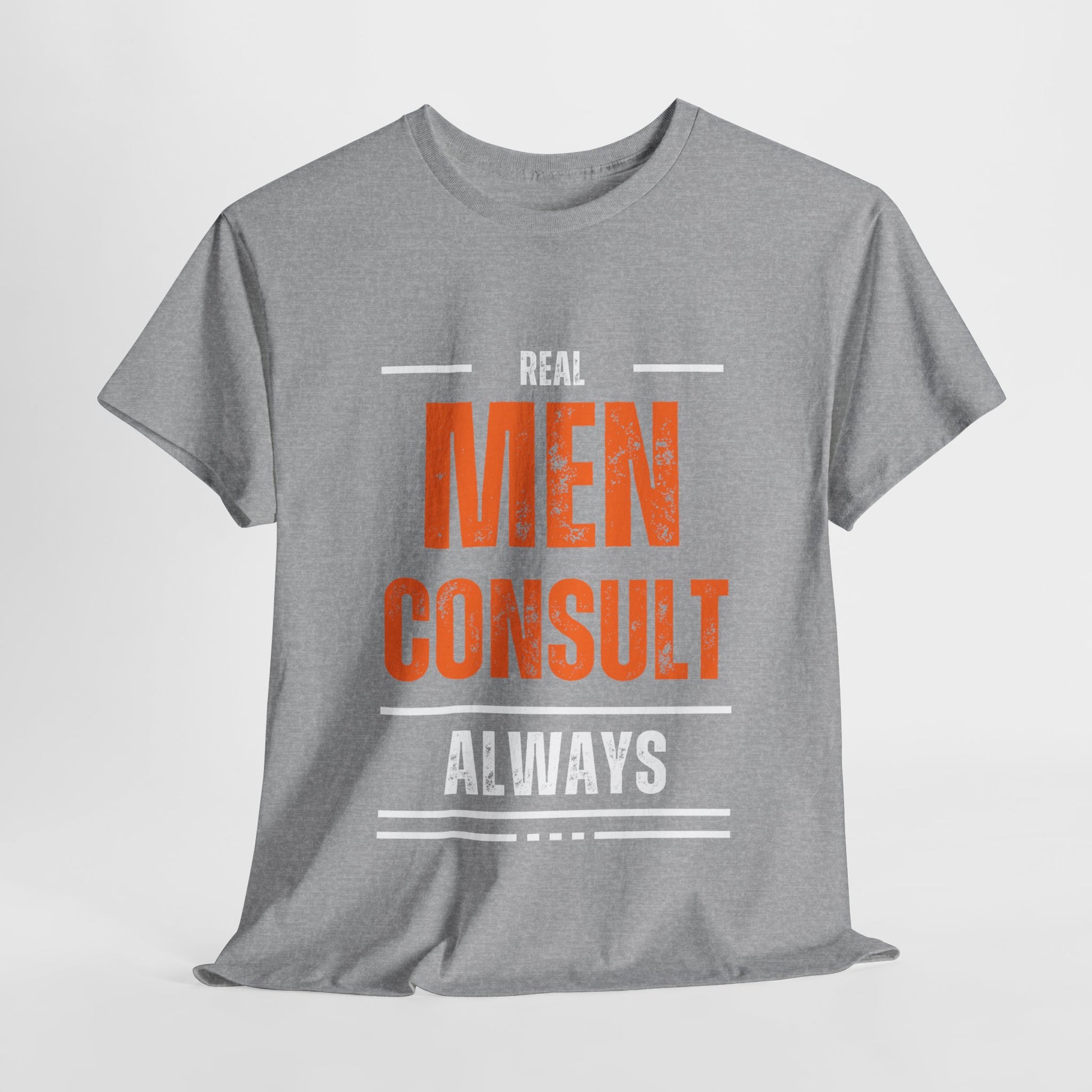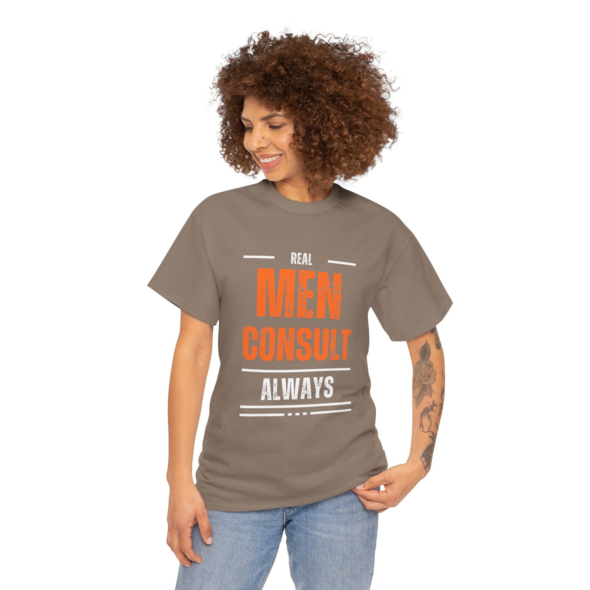 Make a powerful statement with our "Real Men Consult Always" tee. This design celebrates the strength, wisdom, and profound humility found in true consultation – a hallmark of mature leadership and partnership. It's a tribute to men who understand that real power lies not in asserting individual will, but in seeking diverse perspectives, listening deeply, and making decisions collaboratively. This shirt is an intentional choice for anyone who values shared wisdom and collective progress in all aspects of life, from family to community.