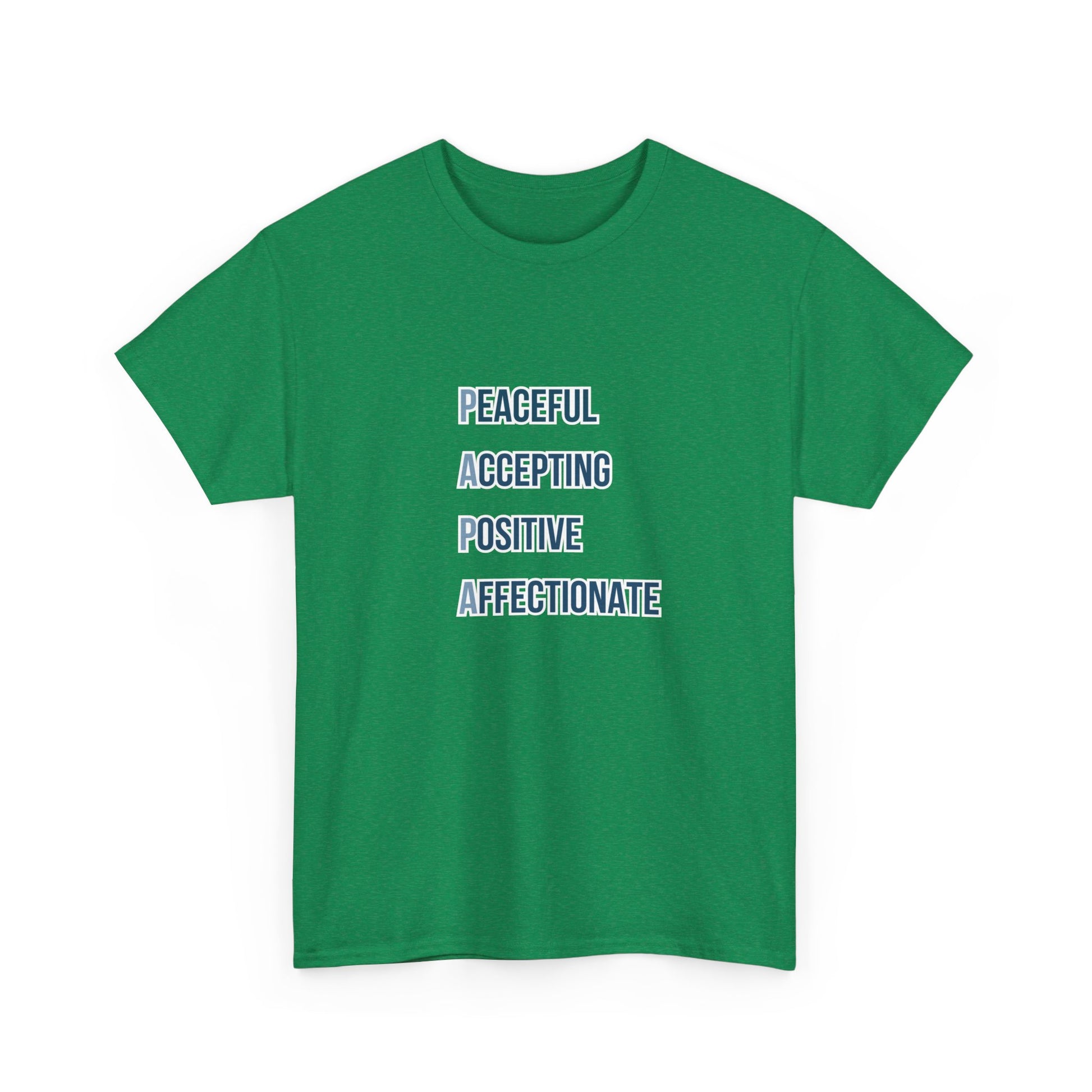 Celebrate the essence of true fatherhood with our "P.A.P.A. - Peaceful Accepting Positive Affectionate" tee. This shirt is a loving tribute to dads who embody these beautiful virtues, creating a nurturing and harmonious environment for their families. It’s for the fathers who lead with calm, embrace with understanding, inspire with optimism, and express boundless love. This tee is a wonderful way to honor the profound impact of a truly positive and present father figure.