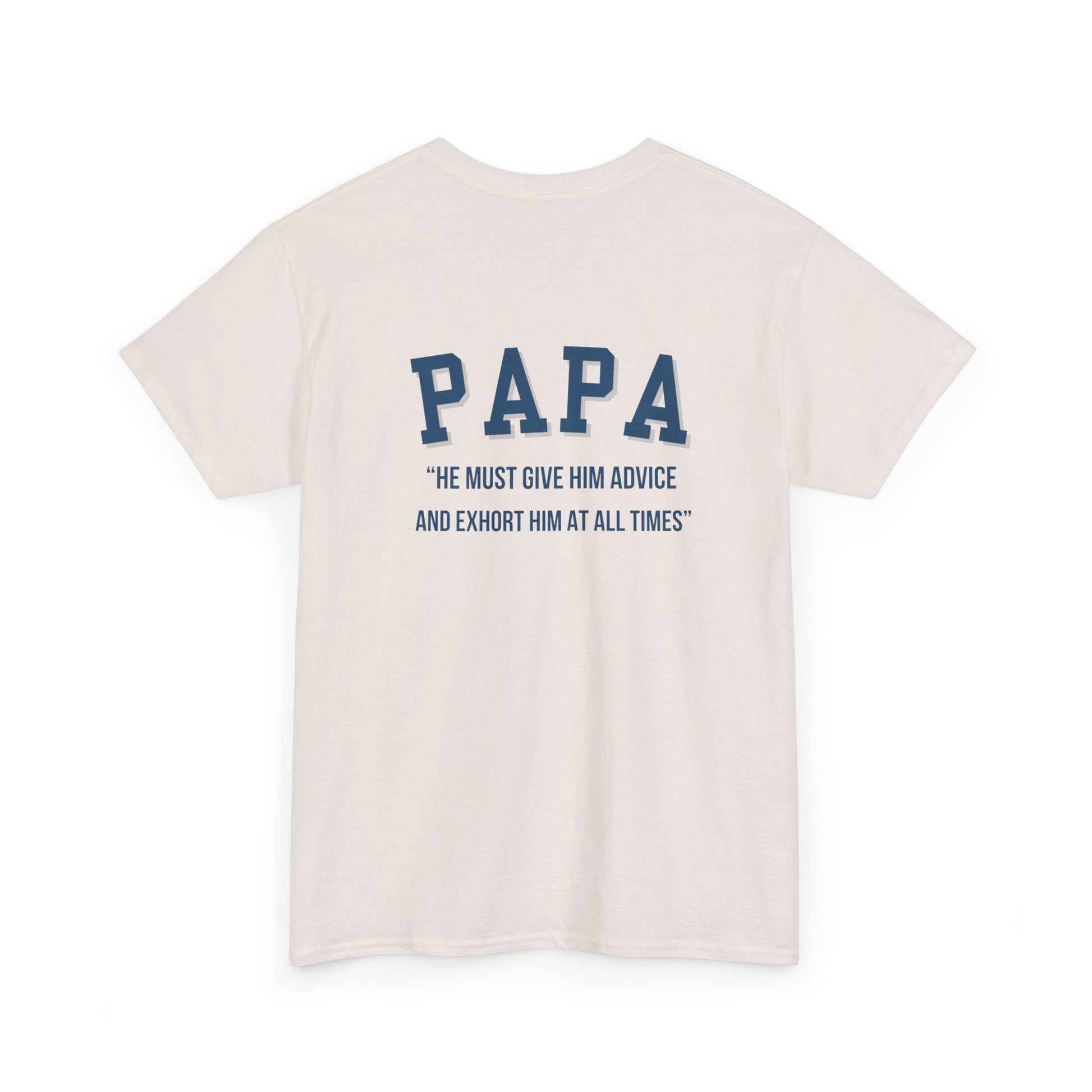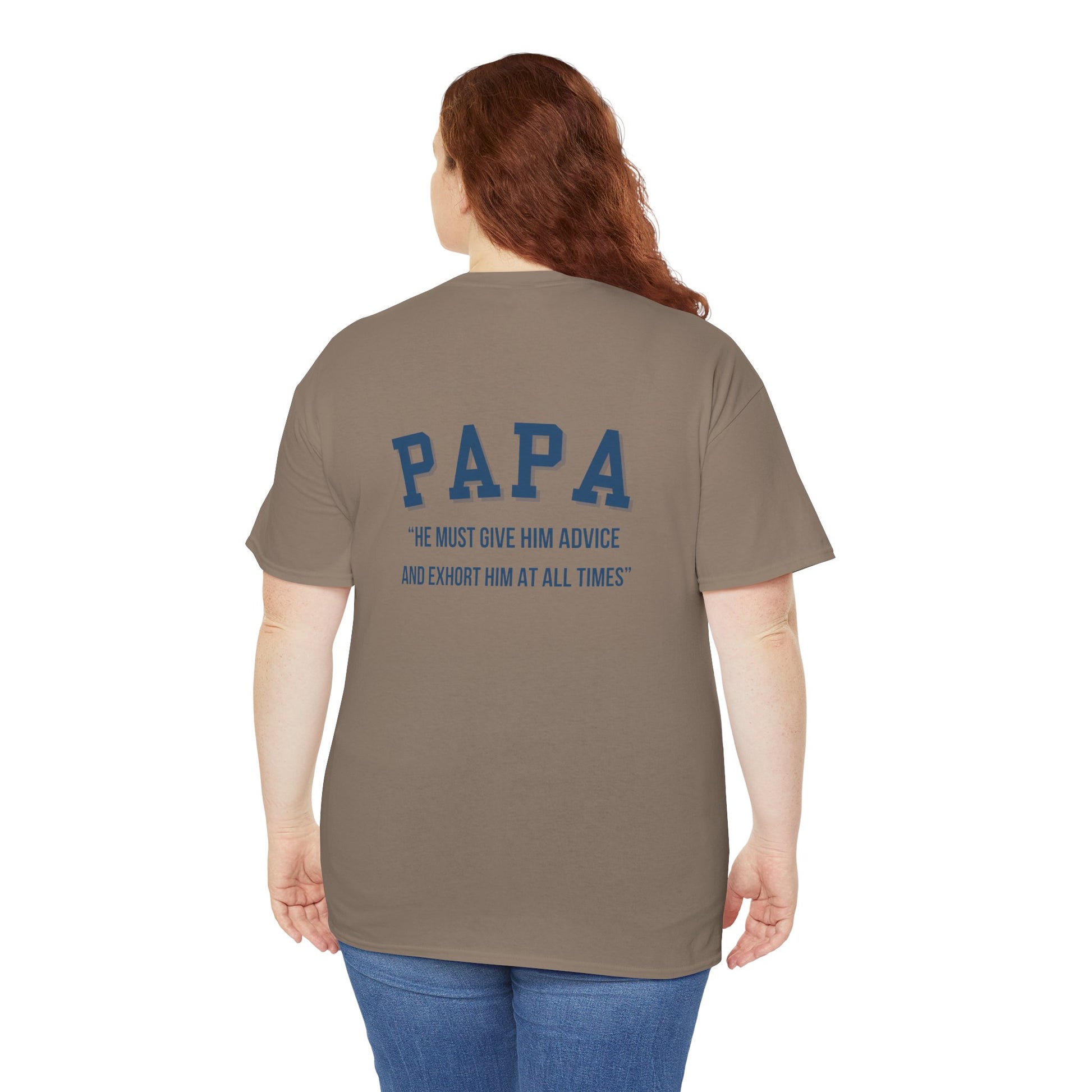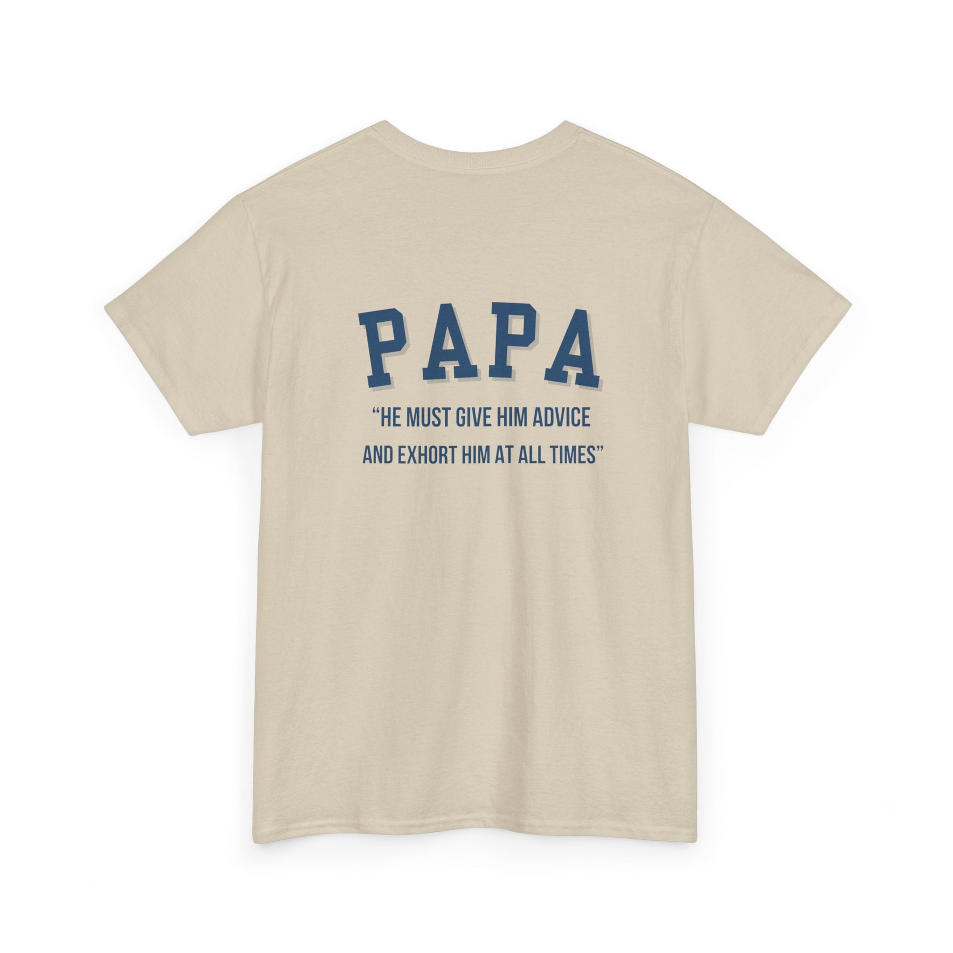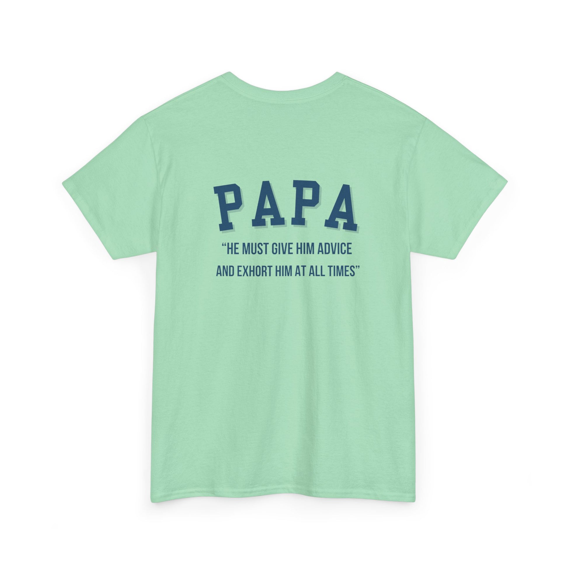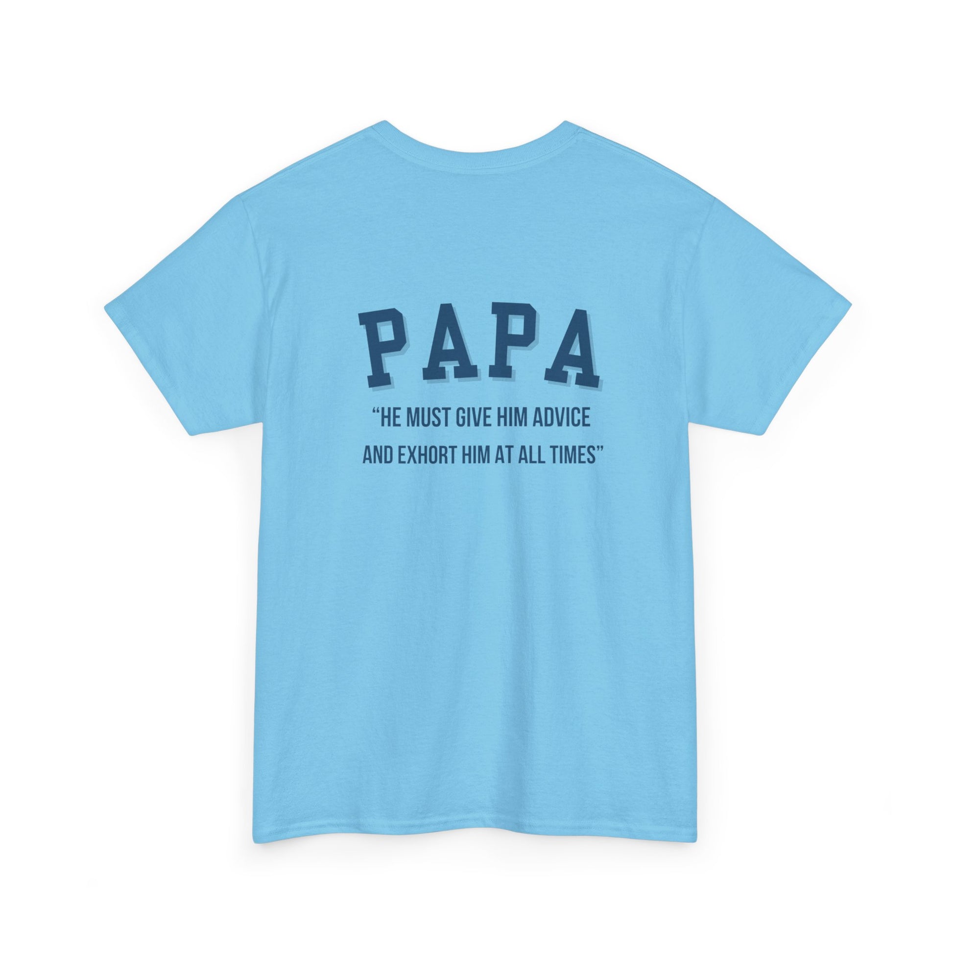 Celebrate the enduring wisdom and constant support of a father with our "Papa: Always Guiding" tee. This shirt highlights a timeless aspect of fatherhood, reflecting the essential role of a dad who is dedicated to providing "advice and exhort[ing] him at all times." It's a tribute to the unwavering presence of a father who consistently offers guidance, encouragement, and the moral compass needed to navigate life's journey. Perfect for the dad who's always there, offering wisdom and helping hands.