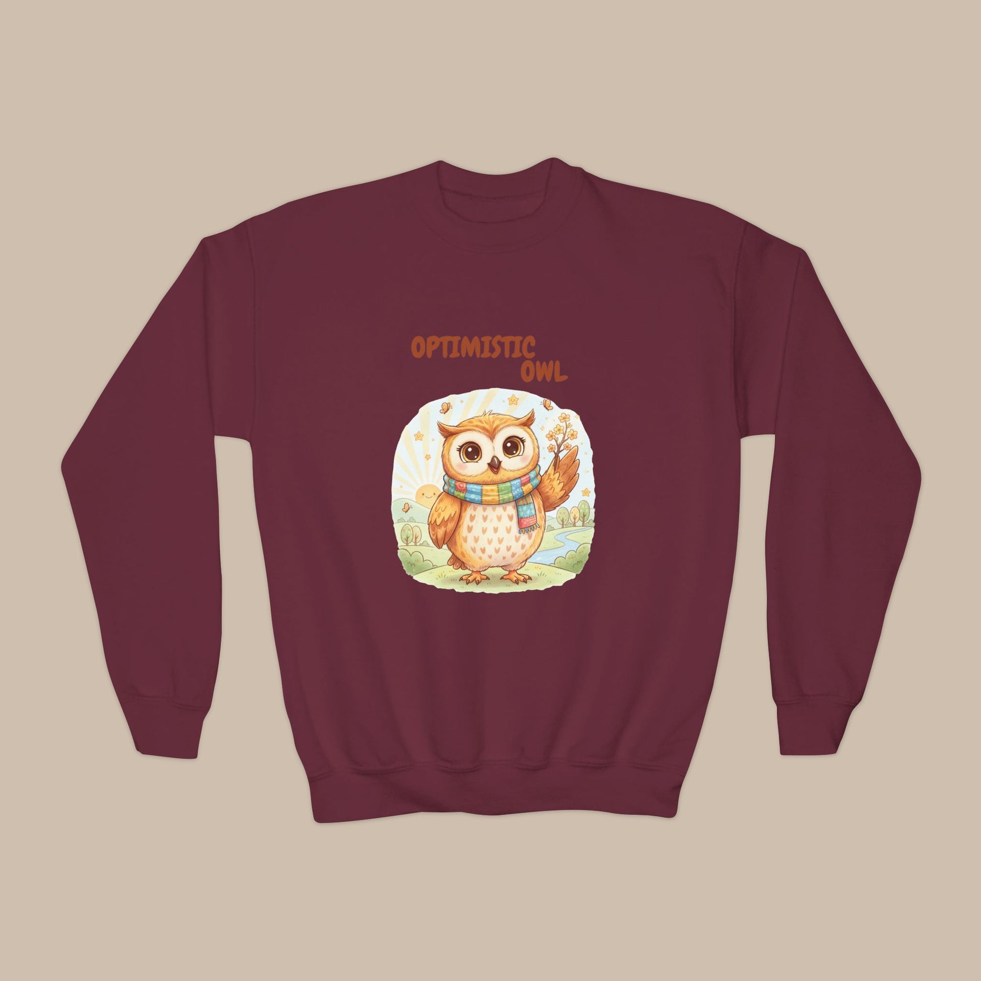 Encourage a bright outlook with our "Optimistic Owl" Kids Sweatshirt! This soft and snuggly piece features a cheerful, wide-eyed cartoon owl, a wise little friend known for seeing the good in every situation. It’s a sweet, playful reminder for your little one to look on the bright side, find joy in learning, and approach each day with a positive attitude. This cozy sweatshirt is perfect for fostering happiness and big dreams!