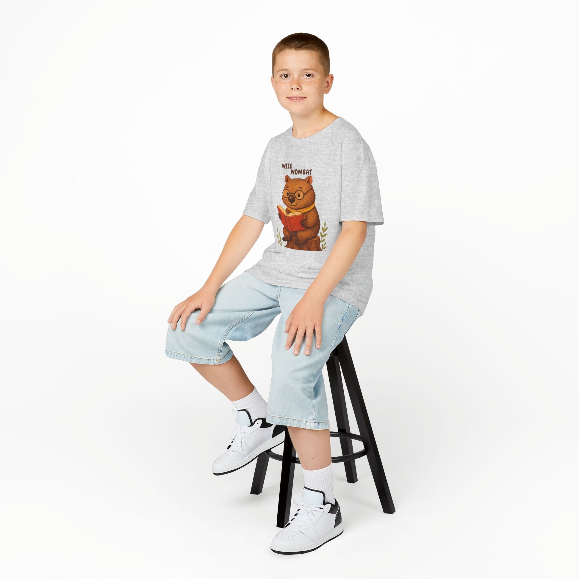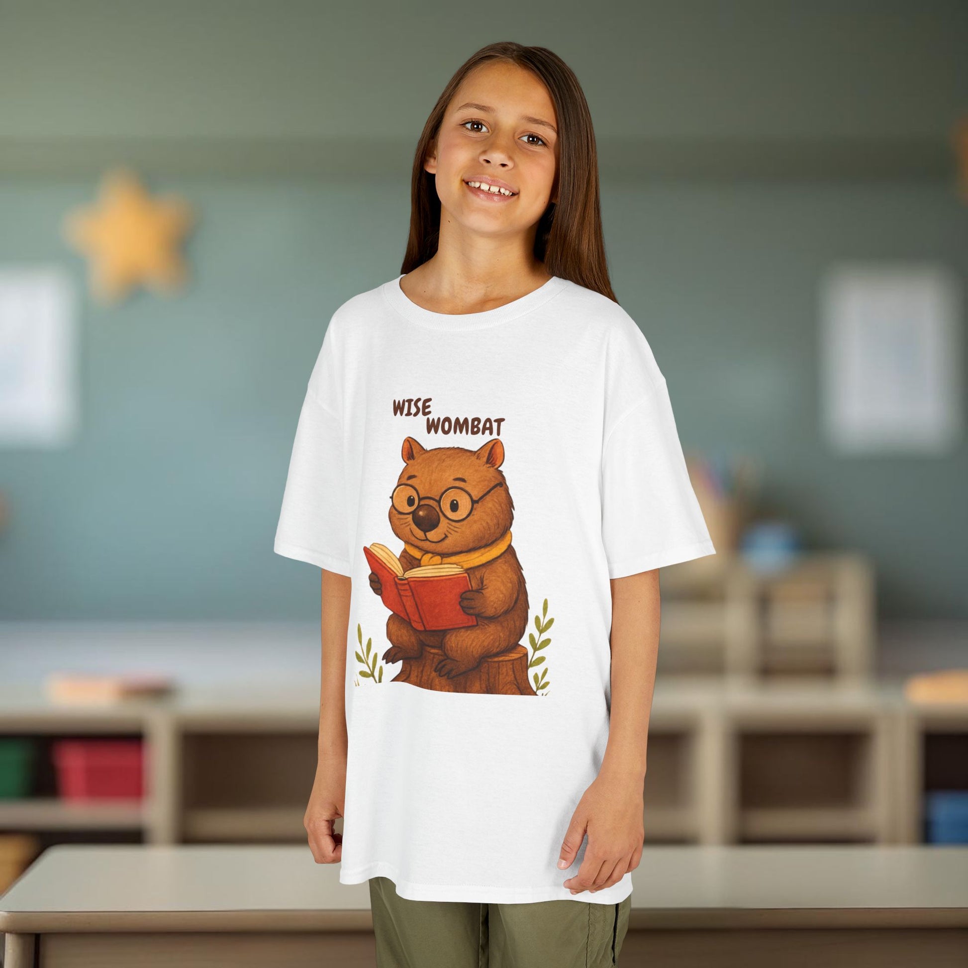 Meet our "Wise Wombat" tee, a playful and fun way to introduce your little one to the concept of being wise—having experience, knowledge, and good judgment! Featuring a studious cartoon wombat wearing glasses and reading a book, this shirt is a perfect fit for any child who loves to learn and explore new ideas. It's a sweet and educational way to celebrate their curiosity, making it a great conversation starter about character and animals.