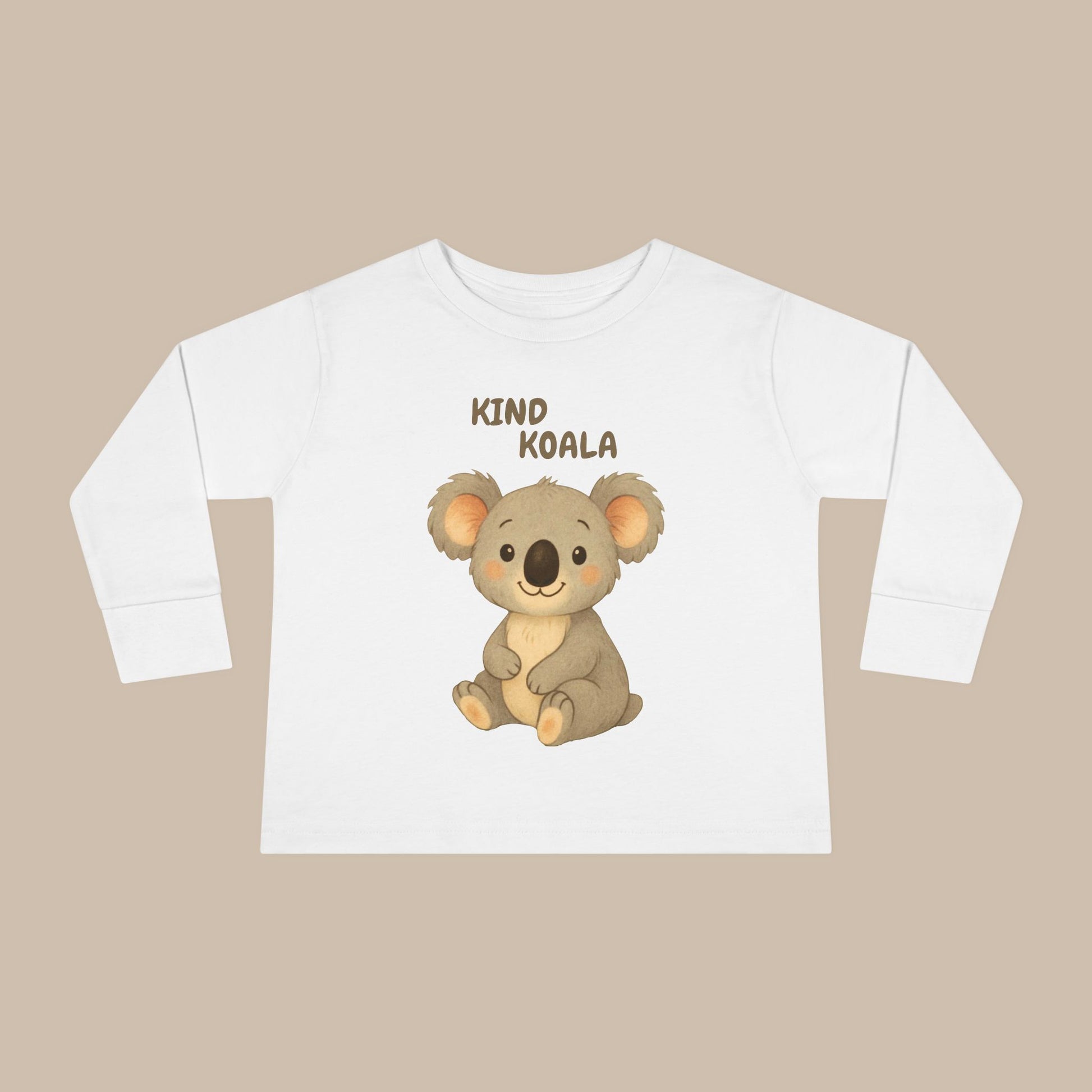 Inspire empathy and friendship with our "Kind Koala" Toddler Long Sleeve Tee! This super soft and cozy top features an adorable cartoon koala, a gentle friend known for its easygoing, loving nature. It's a sweet, playful reminder for your little one about the importance of being kind, thoughtful, and treating everyone with gentleness. It's the perfect comfy tee for encouraging a warm, compassionate heart every day!