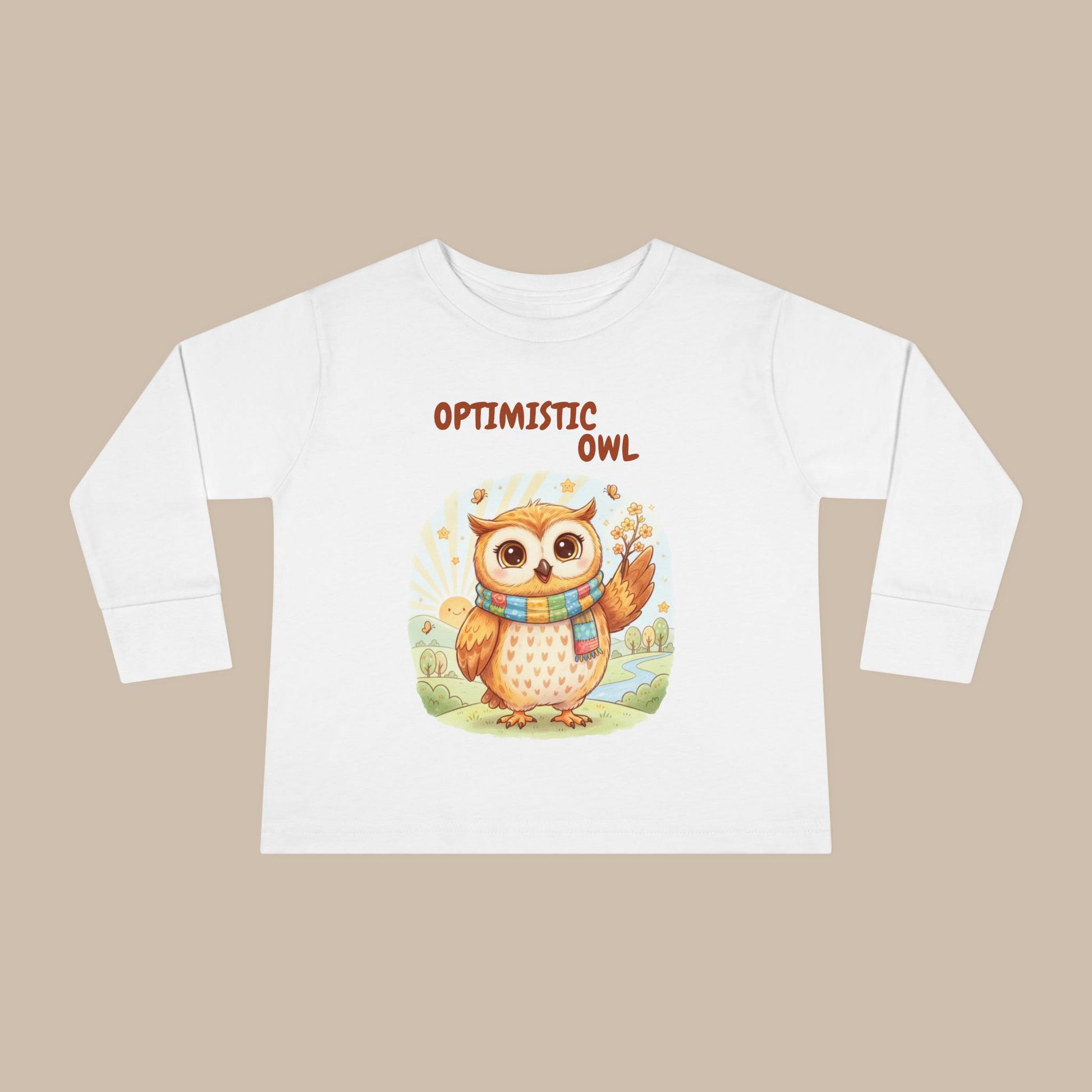 Encourage a bright outlook with our "Optimistic Owl" Toddler Long Sleeve Tee! This super soft and cozy piece features a cheerful, wide-eyed cartoon owl, a wise little friend known for always seeing the sunny side of things. It’s a sweet, playful reminder for your little one to look on the bright side, approach challenges with a positive attitude, and find joy in every day. It's the perfect tee for comfy play and fostering a happy, optimistic mindset!