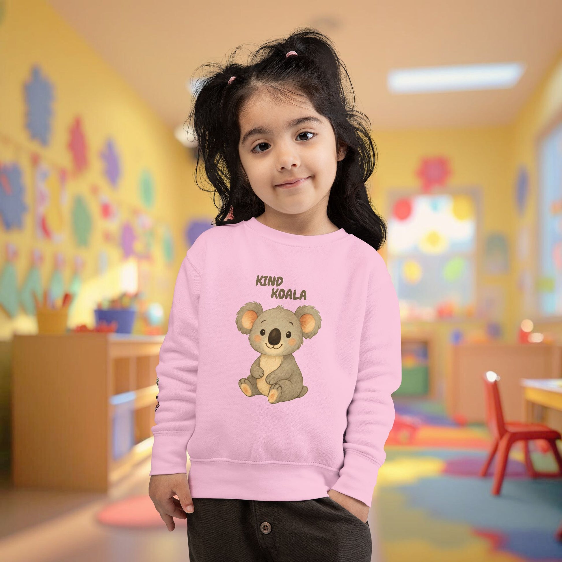 Inspire empathy and friendship with our "Kind Koala" Toddler Sweatshirt! This ultra-soft, cozy sweatshirt features an adorable cartoon koala, a gentle friend known for its easygoing, loving nature. It's a sweet, playful reminder for your child about the importance of being kind, thoughtful, and treating everyone with gentleness and warmth. This is the perfect piece for cozy comfort and fostering a truly compassionate heart!