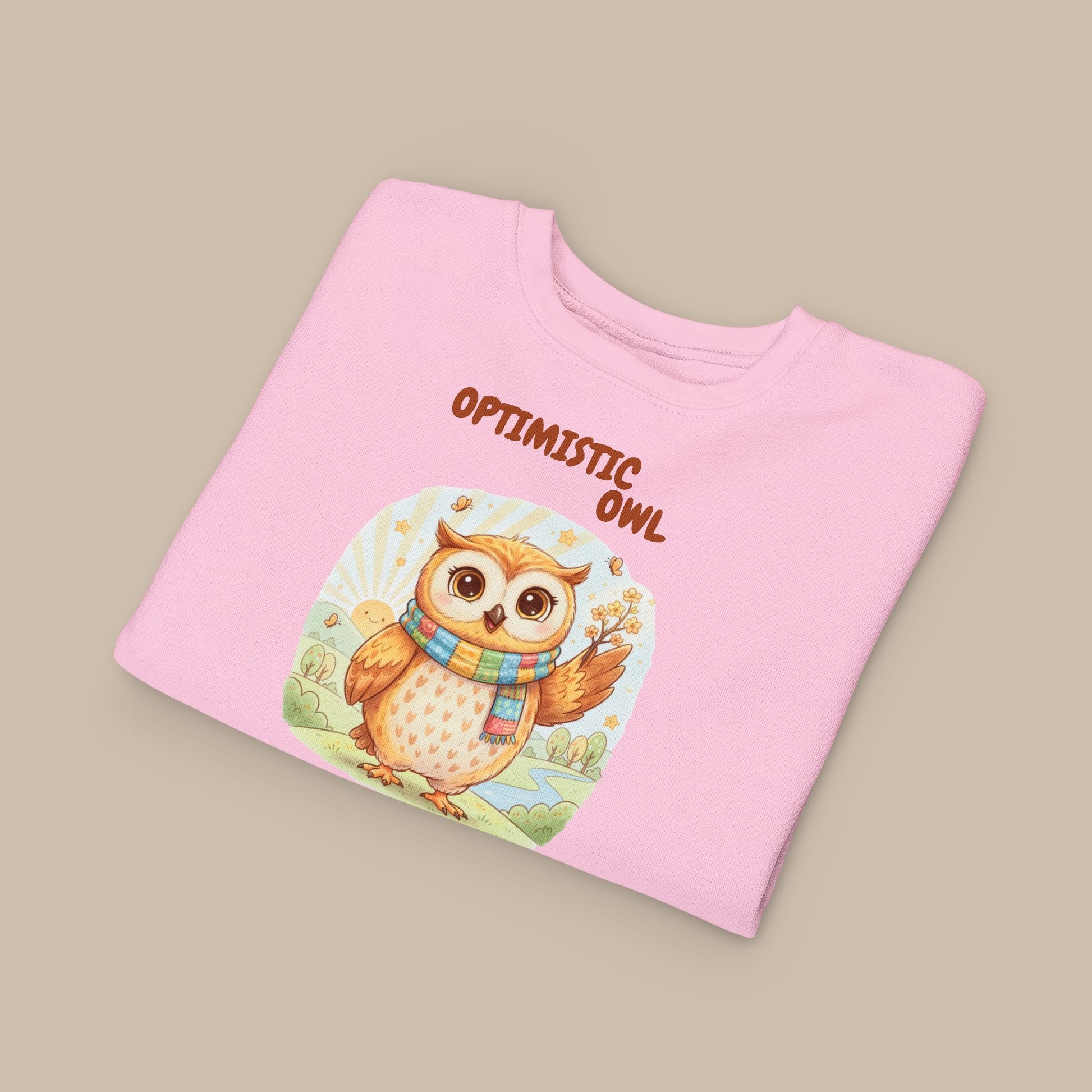 Encourage a bright outlook with our "Optimistic Owl" Toddler Sweatshirt! This soft and snuggly piece features a cheerful, wide-eyed cartoon owl, a wise little friend known for seeing the good in every situation. It’s a sweet, playful reminder for your little one to look on the bright side, find joy in learning, and approach each day with a positive attitude. This cozy sweatshirt is perfect for fostering happiness and big dreams!