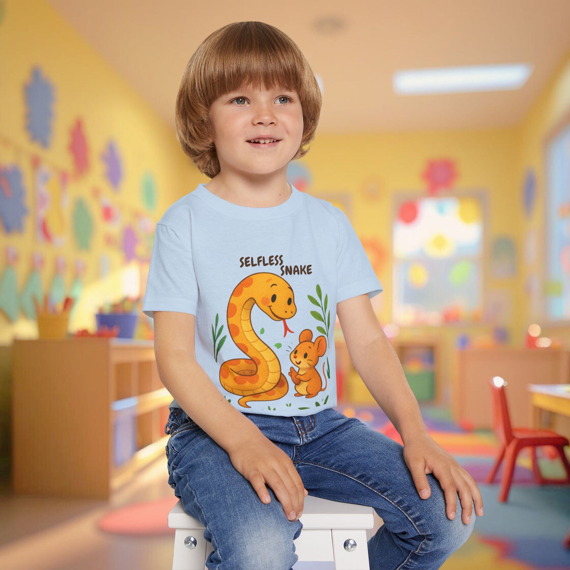Meet our "Selfless Snake" tee, a playful and fun way to introduce your little one to the concept of being selfless—thinking of others' needs and well-being before your own! Featuring a cheerful cartoon snake, this shirt is a perfect fit for any child who is learning the importance of empathy and generosity. It's a sweet and educational way to celebrate their kind heart, making it a great conversation starter about character and animals.
