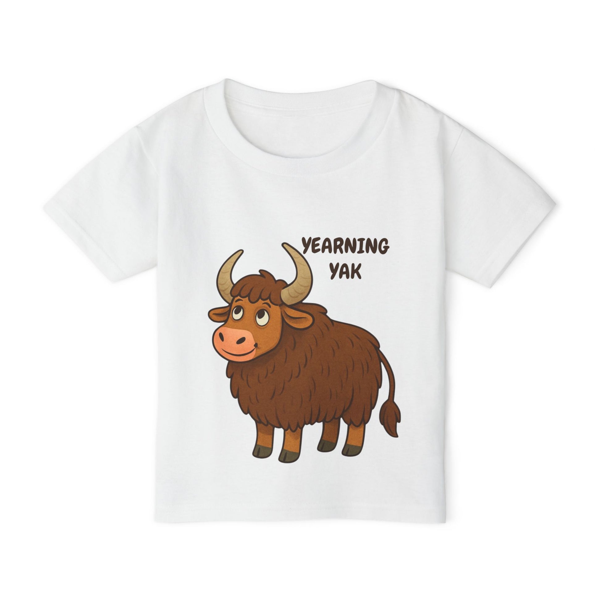 Meet our "Yearning Yak" tee, a playful and fun way to introduce your little one to the concept of yearning—having a strong desire for something good! Featuring a cheerful cartoon yak, this shirt is a perfect fit for any child who has big dreams and a strong desire to learn and grow. It's a sweet and educational way to celebrate their aspirations, making it a great conversation starter about character and animals.